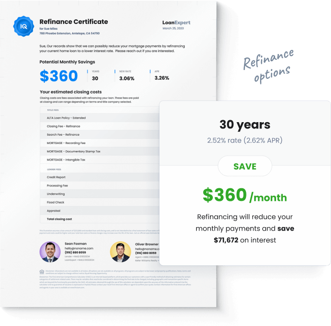 Provide homeowners instant access to net equity reports that show what their home is worth today and estimated fees associated with refinancing their home in today's market